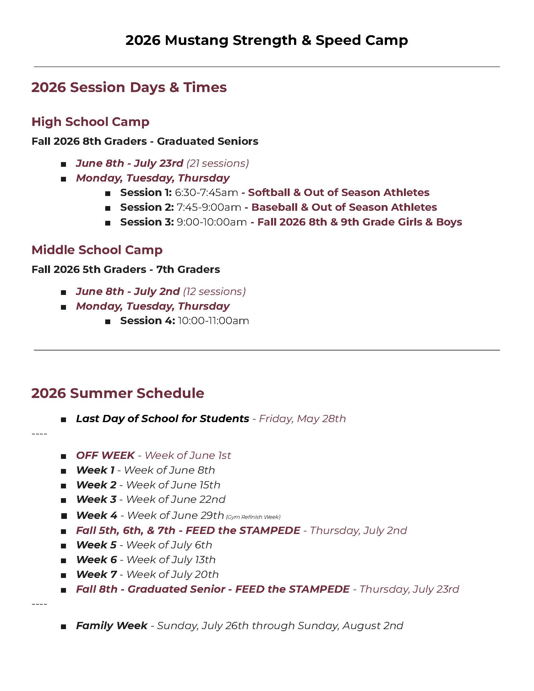 Camp will be held June 8, 9, & 10.